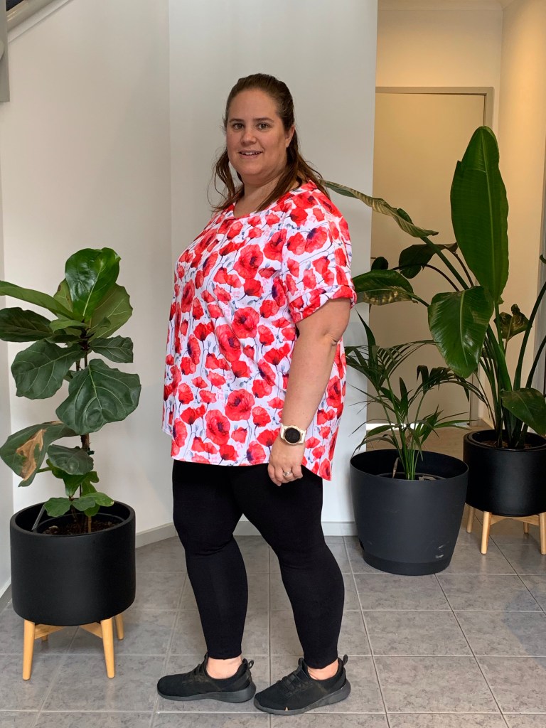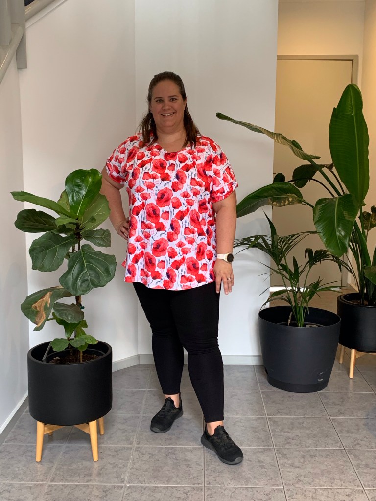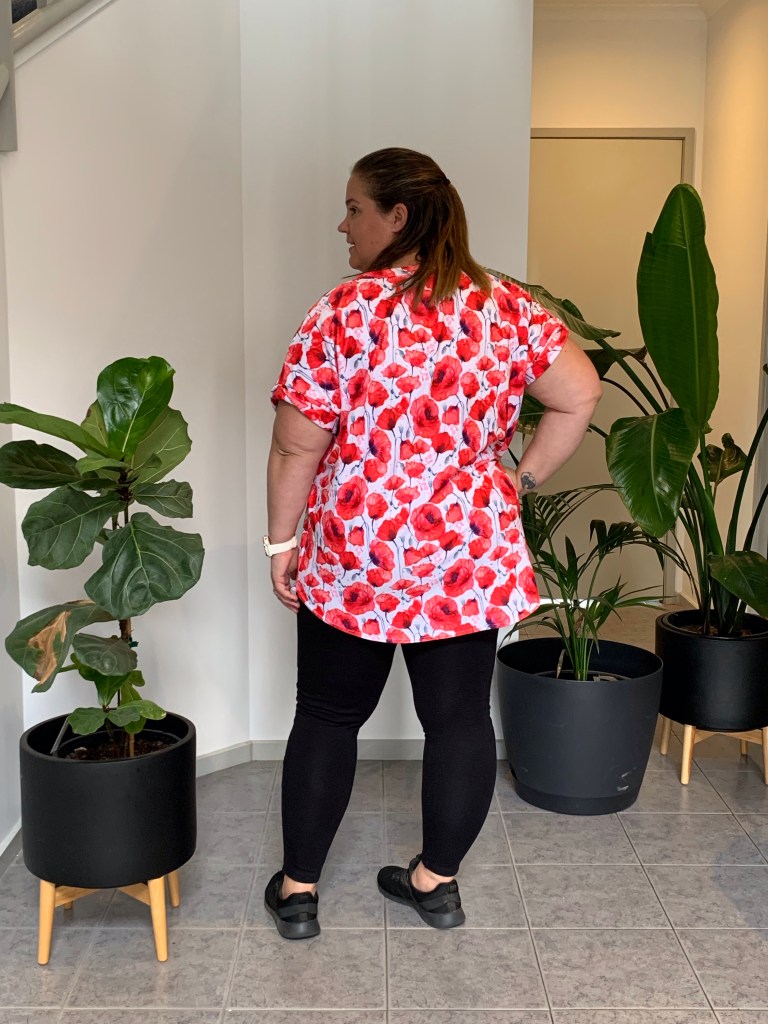 For my test fit I chose a beautiful double brushed polyester (DBP) in a poppy print from Material Magic. This was actually my first time sewing with DBP, initially I found it hard to move through my machine however after a few slight adjustments it moved through and felt like butter. For my test sew I opted for the relaxed neckline, twisted sleeve cuffs and the long length. Overall I was happy with the result however my initial plan for this fabric/print was for wearing to the office or out and about on ANZAC day and Remembrance day. The end result was on my short 164cm frame was a little too long for the intended purpose of this particular top. However, the length would be ideal for a comfy top to stay home and lounge around the house whilst reading a good book on a cool winter’s day.