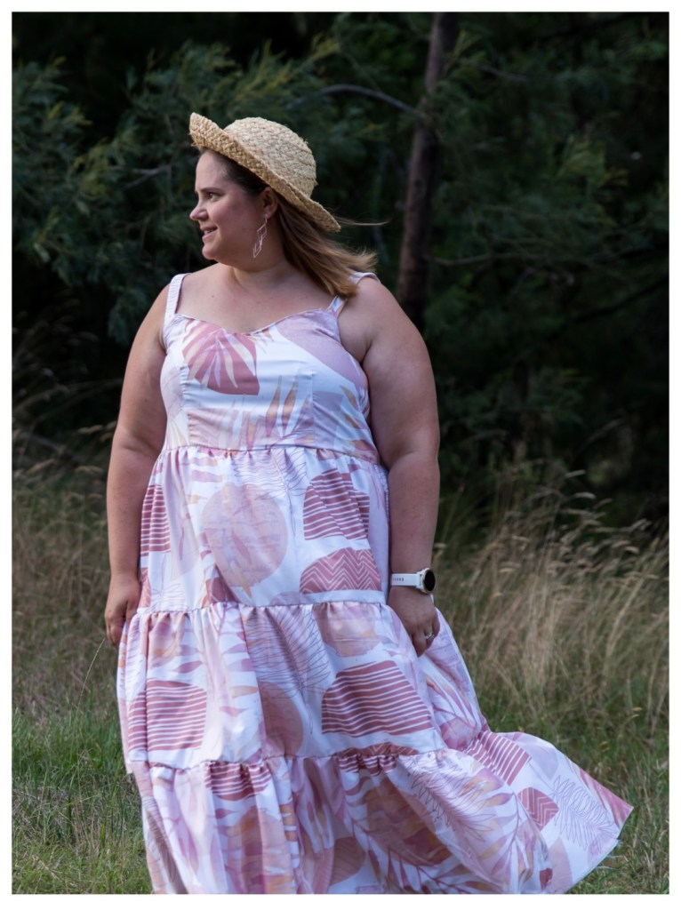 These days I am topping the scales at the heaviest I have ever been (thanks #mumlife and #covidlockdowns) and often find it hard to find on trend patterns that cater to my size. I was very happy to see that the new Field of Dreams Strappy Dress & Top catered to all shapes and sizes (size 4-30).