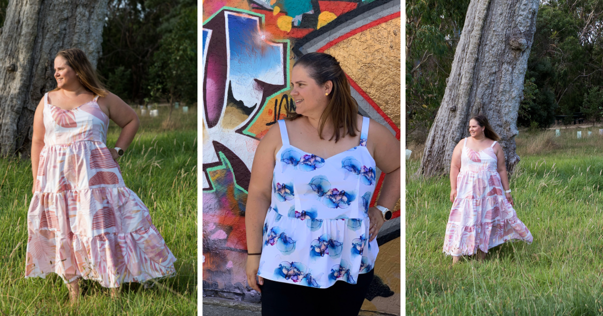 These days I am topping the scales at the heaviest I have ever been (thanks #mumlife and #covidlockdowns) and often find it hard to find on trend patterns that cater to my size. I was very happy to see that the new Field of Dreams Strappy Dress & Top catered to all shapes and sizes (size 4-30).